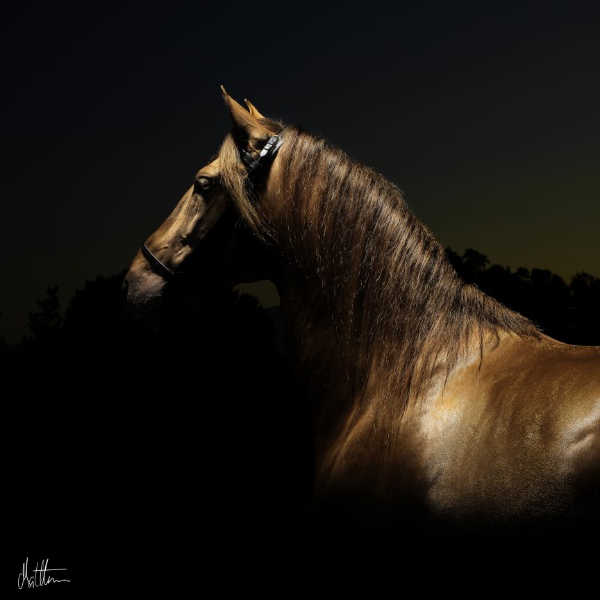 Joya is a double pearl and is a very unusual colour. Her line is from the Cartujanno horse, BODEGUERO II, which carried the pearl gene.